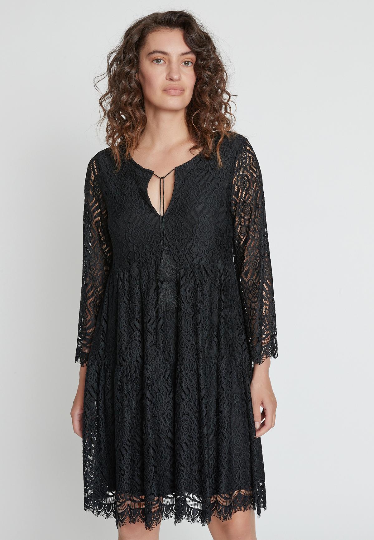 Wir haben hier eine Auswahl passender Kleider für dich zusammengestellt – Etuikleider, Midi-Kleider und schwarze Langarm-Kleider, die dich in der traurigen Stunde des Abschiednehmens stilvoll umhüllen. Du kannst auch eine Hosen-Kleid-Kombination wählen und eine schwarze Marlenehose zu einem A-Linien-Kleid tragen.