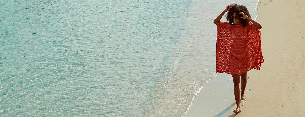 Lust auf einen Strandspaziergang? Wirf einfach den bronzefarbenen Poncho über den Bikini und wate in style am Meer entlang. Was für ein Gefühl! Mit der türkisblau-grün gestreiften Tunika, coolen Sunglasses und geschnürten Sandaletten bist du im Nu ausgehfein und mit Wedges und XXL-Bag in deinem mondänen Fransen-Kimono kannst du am nahegelegenen Fisch- und Gemüsemarkt zwischen zwei Badegängen mit deinem Outfit Furore machen. Oder du entscheidest dich für deine Lieblings-Hot-Pants und den favorisierten Strick-Überwurf in Erdbeerrot-Nuancen. Soviel ist sicher – mit diesen schicken Essentials bist du an den Traumplätzen dieser Welt bei allen Gelegenheiten stilvoll unterwegs.