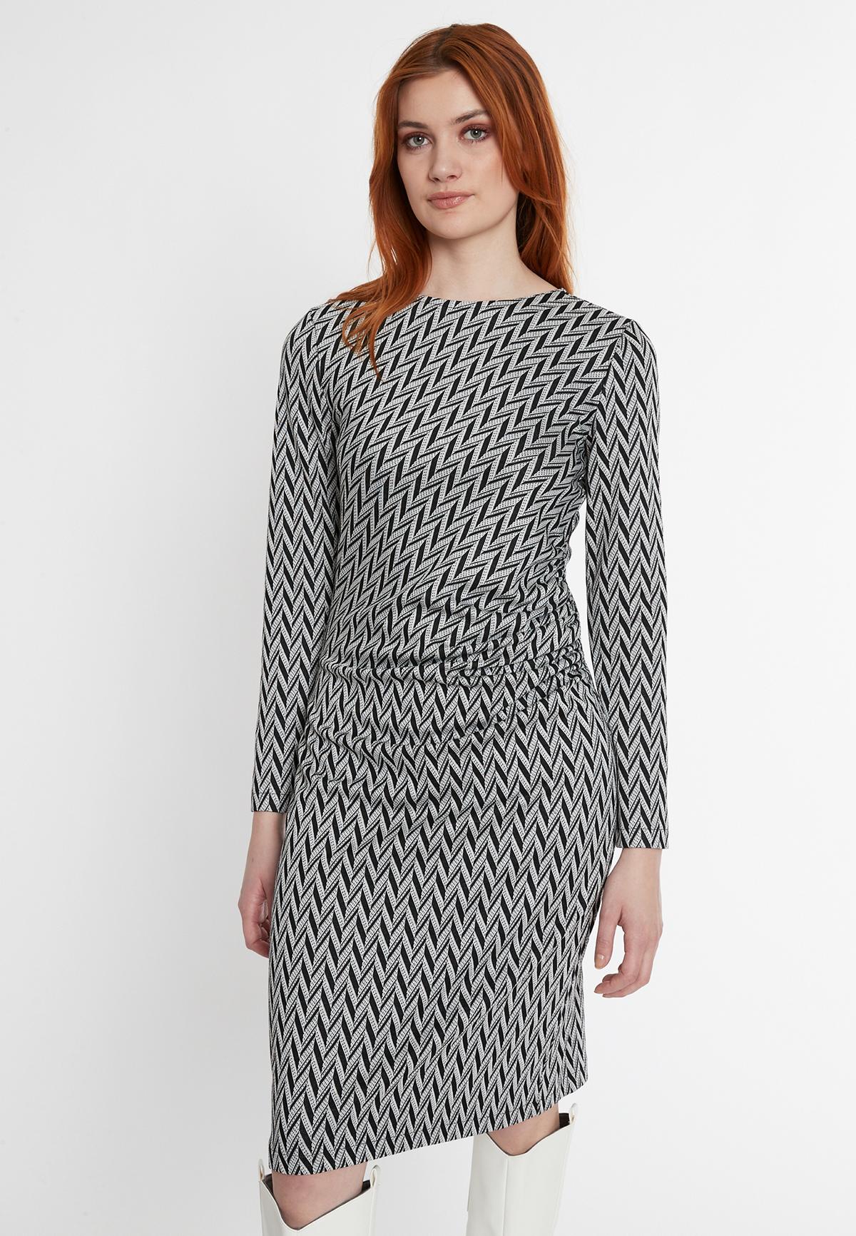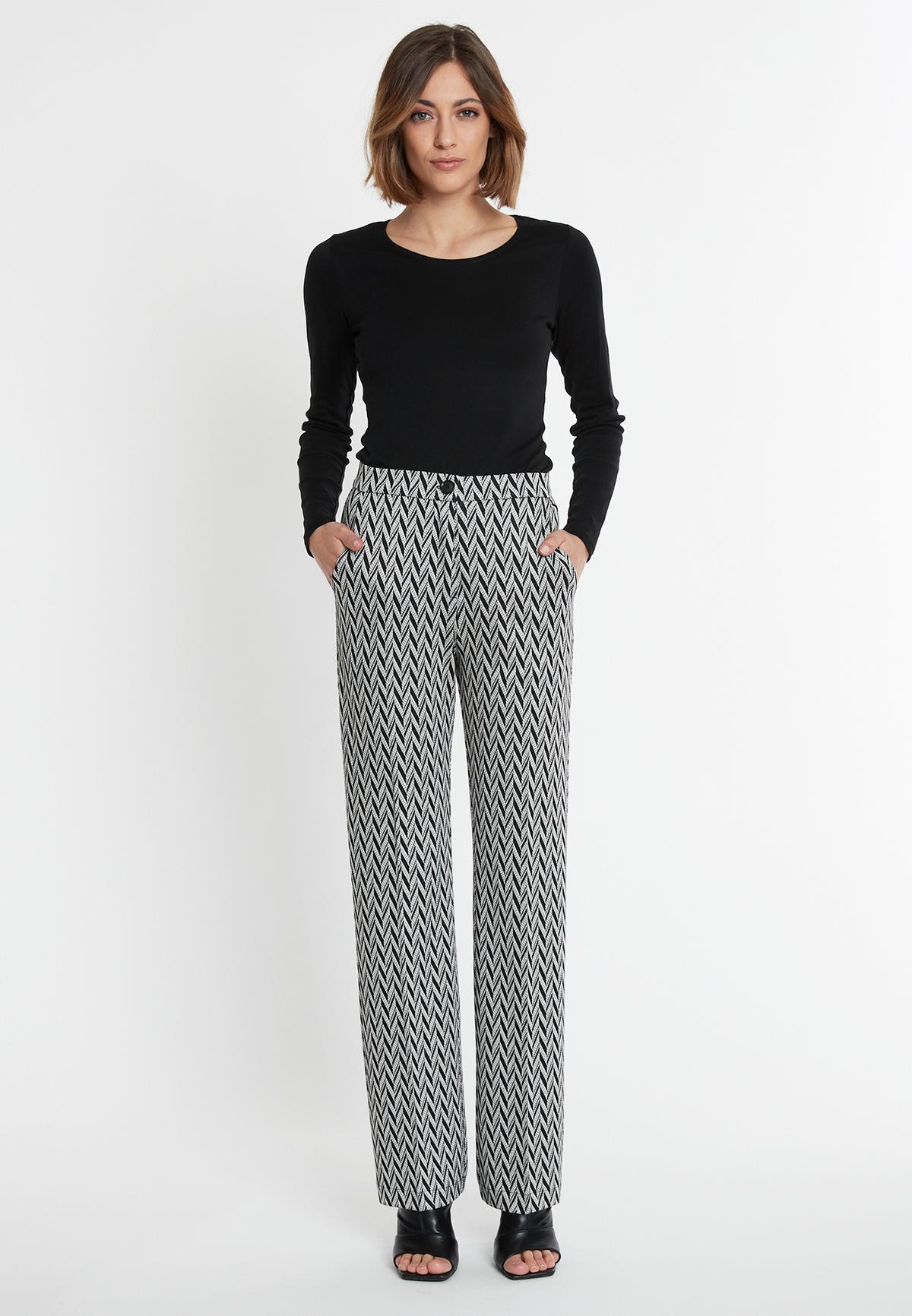 Chevron-Muster kommen meist in Schwarz- oder Braun-Weiß. Wähle zu deiner Fischgräten-Hose einen einfarbigen Rolli in Pink, Rot, Gelb, Lila oder leuchtendem Türkis und style ein cooles Gesamt-Outfit. Edler Silber-Schmuck setzt das i-Tüpfelchen.